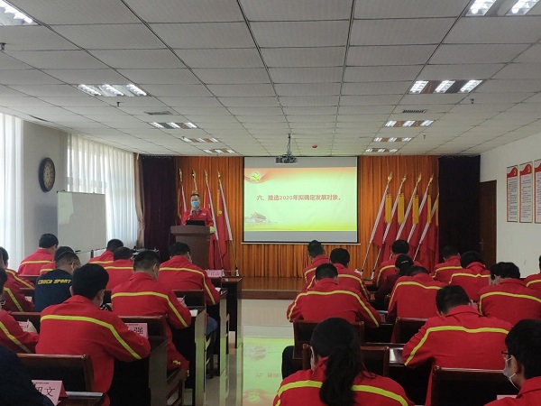 2020年5月11日下午,鄭州萬達重工股份有限公司黨總支在行政綜合樓二樓黨員活動室開展了2020年5月份主題黨日活動。黨總支全體黨員、入黨積極分子、入黨申請人共計40余人參加了此次活動。活動由萬達重工黨總支組織委員袁希海主持。