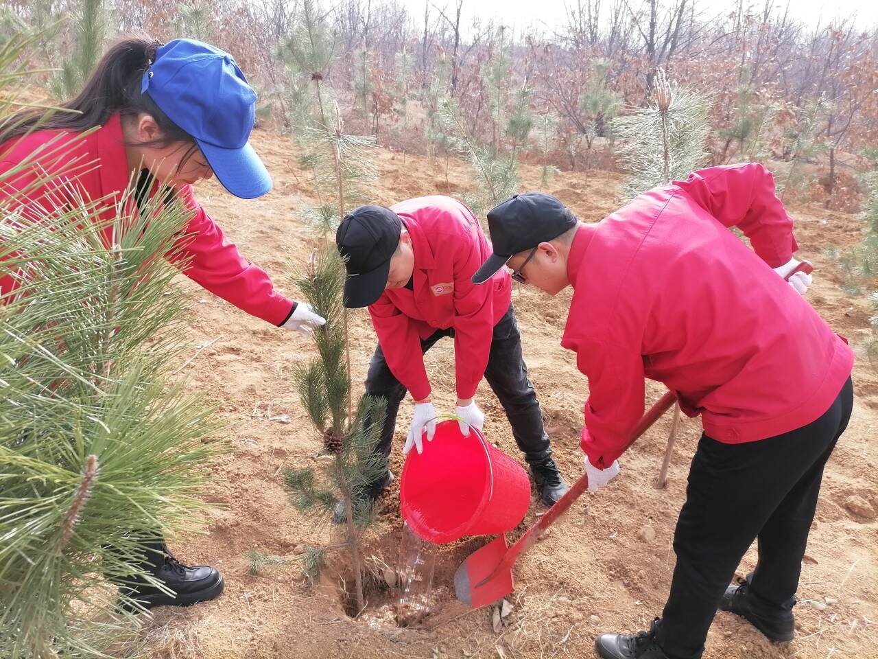 一桶清水,灌溉希望,一棵樹苗,承載未來。植樹現(xiàn)場黨旗、司旗、黨小組旗、團(tuán)旗在風(fēng)中迎風(fēng)飄揚(yáng),植樹活動中,大家熱情高漲、干勁十足,全體參加人員發(fā)揚(yáng)不怕苦、不怕臟、不怕累的精神,分工協(xié)作、揮鍬鏟土、扶樹填坑、踏土夯苗、提水澆灌,有條不紊地完成植樹各個環(huán)節(jié)。經(jīng)過大家一上午的共同努力,一株株新栽種的樹苗迎風(fēng)挺立,為大地增添了勃勃生機(jī)。