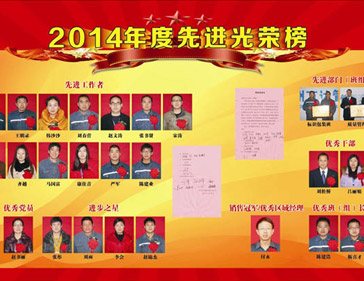 2016/01/28 406 2014年全年工作中,二十三位同志和兩個優(yōu)秀班組表現(xiàn)突出,踐行公司價值、實干、實效的工作理念,認(rèn)真工作,愛崗敬業(yè),始終保持旺盛的精神風(fēng)貌和飽滿的工作激情,在各自工作崗位樹立了榜樣,被評為公司的先進代表。