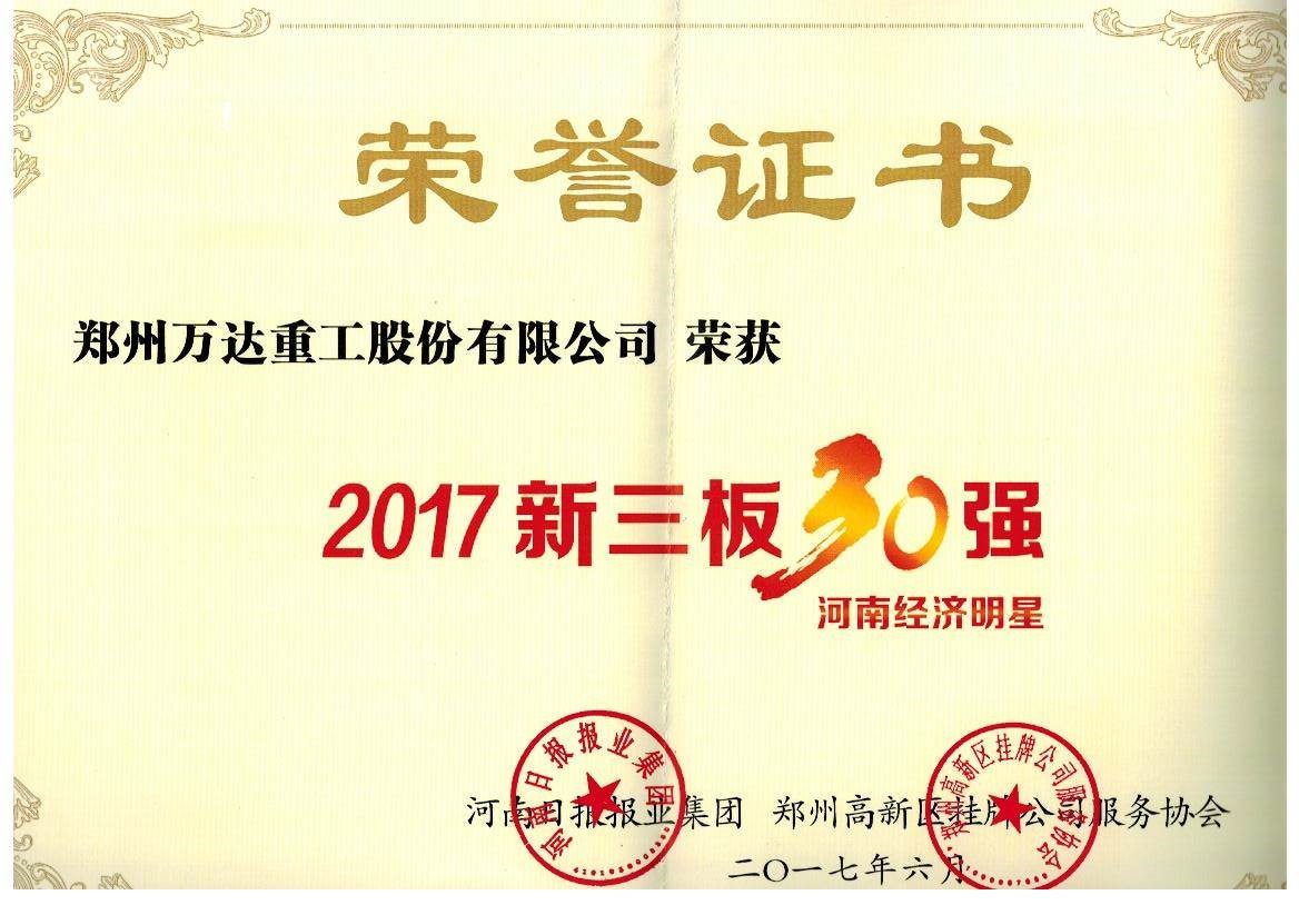 熱烈祝賀鄭州萬達(dá)重工股份有限公司榮獲河南新三板“TOP30強”