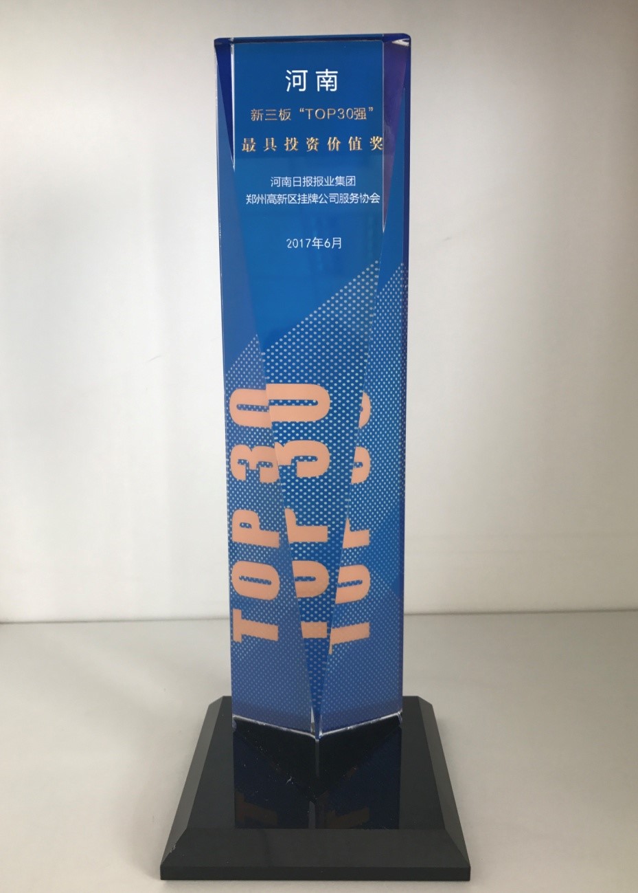 熱烈祝賀鄭州萬達(dá)重工股份有限公司榮獲河南新三板“TOP30強”最具投資價值獎并獲得 “2017河南新三板30強”榮譽稱號。