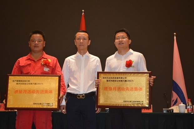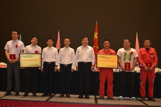 按照會議議程,大會對鄭州萬達(dá)科技發(fā)展有限公司、生產(chǎn)管理部金加工模塊頒發(fā)了“第六屆質(zhì)量月活動先進(jìn)集體”榮譽(yù)獎牌,向王明錄、孫鵬飛頒發(fā)了“第六屆質(zhì)量月活動優(yōu)秀個人”榮譽(yù)證書并對丁西彬頒發(fā)了“中石油年度投標(biāo)工作優(yōu)秀個人”榮譽(yù)證書;并由丁西彬代表獲獎人員致獲獎感言,股份公司領(lǐng)導(dǎo)與先進(jìn)集體、優(yōu)秀個人進(jìn)行了合影留念。