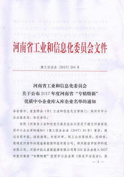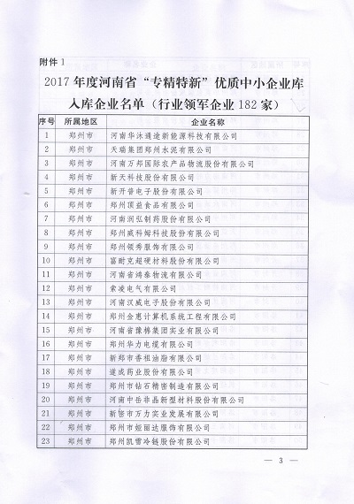 按照《河南省工業(yè)和信息化委員會辦公室關于建立河南省優(yōu)質中小企業(yè)庫的通知》(豫工信辦企業(yè)【2017】20號)的要求,經過自愿申報、逐級推薦、專家評審、網上公示等程序,鄭州萬達重工股份有限公司成果入選河南省“專精特新”優(yōu)質中小企業(yè)庫,被認定為行業(yè)領軍企業(yè)。
