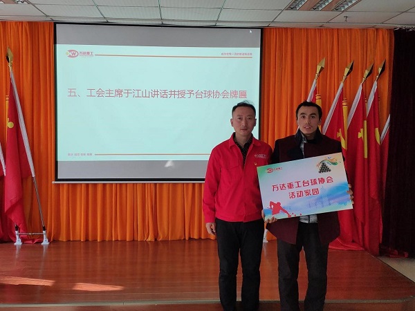 為豐富員工業(yè)余文化生活,共創(chuàng)幸福萬達事業(yè),在公司領(lǐng)導(dǎo)的大力支持下,在萬達重工工會辦的牽頭下,萬達重工臺球協(xié)會成立大會于2018年11月29日在公司二樓會議室隆重召開,萬達重工臺球協(xié)會全體成員參加了本次大會。公司袁總、馬總、劉總等公司高管前來表示祝賀。