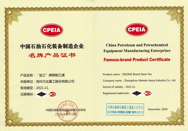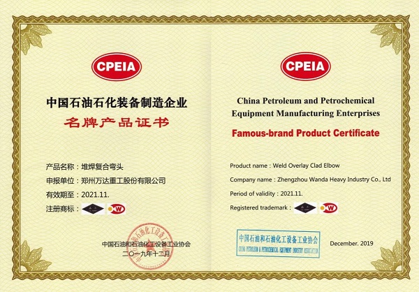 為更好落實(shí)“中國(guó)制造2025”的發(fā)展戰(zhàn)略,培育企業(yè)具有科技創(chuàng)新水平的名牌產(chǎn)品,根據(jù)《中國(guó)石油石化裝備制造服務(wù)行業(yè)名牌產(chǎn)品推薦辦法》規(guī)定,經(jīng)過(guò)企業(yè)自愿申報(bào)、行業(yè)部門(mén)初審、專(zhuān)家評(píng)審等環(huán)節(jié),萬(wàn)達(dá)重工 “益工”牌“堆焊復(fù)合彎頭”和“益工牌鋼制三通”等2類(lèi)產(chǎn)品被中國(guó)石油和石油化工設(shè)備工業(yè)協(xié)會(huì)評(píng)定為中國(guó)石油石化裝備制造企業(yè)名牌產(chǎn)品并頒發(fā)證書(shū)。