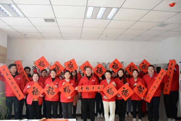 以寫春聯(lián)、書福字為主題的送溫暖活動(dòng),是萬達(dá)重工多年來一直堅(jiān)持的傳統(tǒng)活動(dòng),一副副福字不僅蘊(yùn)含了股份公司對(duì)全體員工的美好祝福,更寄托了大家對(duì)新的一年的美好期望。通過開展“喜迎新春 寫福送福”活動(dòng),既傳播了中國傳統(tǒng)文化,增添了節(jié)日氛圍,又拉近了股份公司與員工之間的距離,讓大家在感受中國傳統(tǒng)文化的同時(shí),折射出“平安、悅享、感恩、幸福”的企業(yè)關(guān)愛理念。最后,工會(huì)主席于江山、各工會(huì)委員同公司書法愛好者們進(jìn)行合影留念,此次活動(dòng)所寫的福字將與發(fā)放的春節(jié)禮品一起全部送到所有萬達(dá)員工手中。