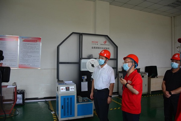 高義一行首先參觀了萬(wàn)達(dá)重工技術(shù)中心(CNAS實(shí)驗(yàn)室),股份公司董事長(zhǎng)、書記何清就實(shí)驗(yàn)室的高端檢驗(yàn)檢測(cè)設(shè)備、檢測(cè)能力及產(chǎn)品研發(fā)能力、專利數(shù)量、國(guó)家標(biāo)準(zhǔn)、國(guó)際標(biāo)準(zhǔn)的參編情況等進(jìn)行了匯報(bào)。