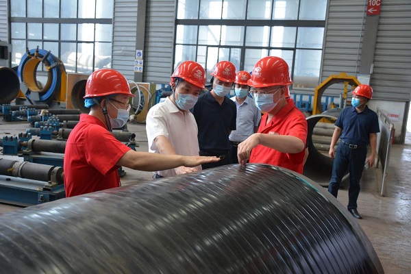 隨后,高義一行深入萬(wàn)達(dá)重工堆焊智能制造車間、彎制車間等聯(lián)合工房進(jìn)行參觀指導(dǎo),實(shí)地了解公司的生產(chǎn)運(yùn)營(yíng)情況,股份公司董事長(zhǎng)、書記何清就公司核心用戶、科技創(chuàng)新、生產(chǎn)裝備、技術(shù)及生產(chǎn)能力、產(chǎn)品市場(chǎng)等情況向調(diào)研組作了詳細(xì)匯報(bào),高副市長(zhǎng)認(rèn)真聽取了產(chǎn)業(yè)發(fā)展情況匯報(bào),了解企業(yè)發(fā)展過程中遇到的難題,聽取了對(duì)進(jìn)一步改善營(yíng)商環(huán)境的建議。