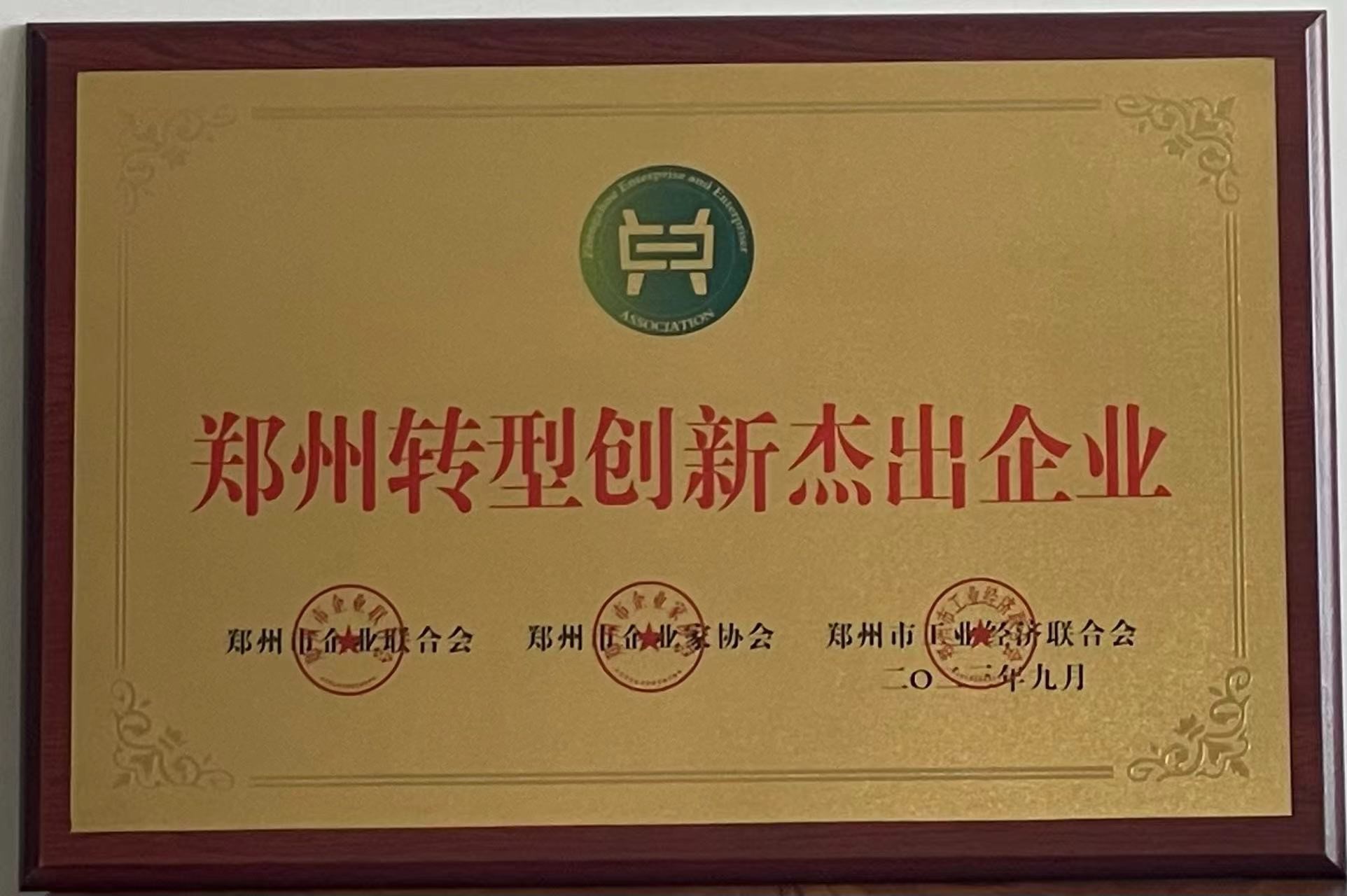 熱烈祝賀鄭州萬達(dá)重工股份有限公司獲得“鄭州市轉(zhuǎn)型創(chuàng)新杰出企業(yè)”榮譽稱號
