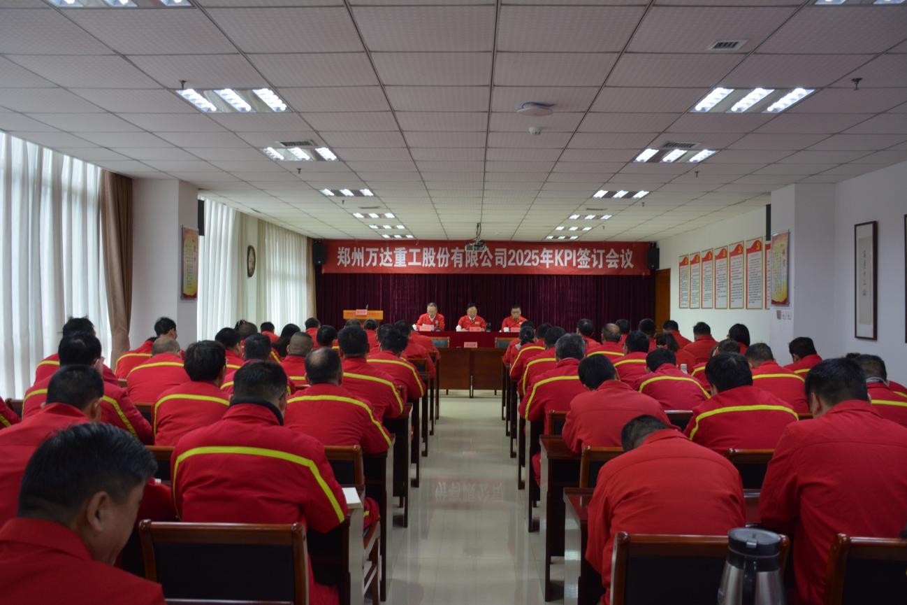 為全面貫徹好、落實好、完成好公司2025年的各項任務,確保高質量完成公司年度發(fā)展目標,2025年2月6日上午,鄭州萬達重工股份有限公司在行政綜合樓二樓會議室召開2025年KPI簽訂會議。股份公司黨委書記、董事長何清,股份公司董事、總經(jīng)理張付峰出席會議,股份公司部門班組長以上管理人員及部門員工代表參加了本次會議。會議由黨委副書記、工會主席于江山主持。