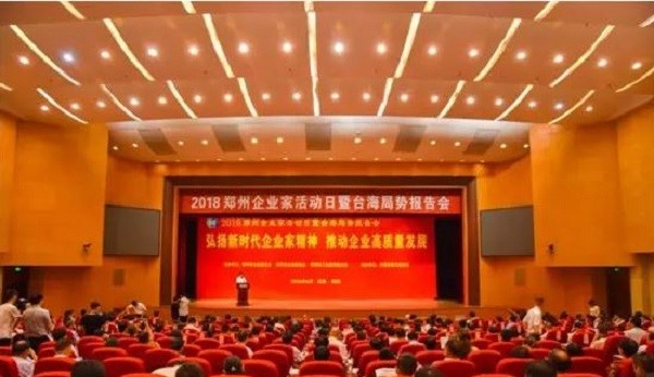 2018/06/13 651 2018年6月12日上午,由鄭州市企業(yè)聯(lián)合會(huì)、企業(yè)家協(xié)會(huì)、工業(yè)經(jīng)濟(jì)聯(lián)合會(huì)主辦的2018鄭州企業(yè)家活動(dòng)日暨臺(tái)海局勢報(bào)告會(huì)在河南省黃河迎賓館隆重召開,大會(huì)以弘揚(yáng)新時(shí)代企業(yè)家精神 推動(dòng)企業(yè)高質(zhì)量發(fā)展為主題,旨在進(jìn)一步全面貫徹學(xué)習(xí)黨的十九大精神,大力弘揚(yáng)新時(shí)代企業(yè)家精神,壯大企業(yè)家隊(duì)伍,增強(qiáng)企業(yè)家的信心,全面發(fā)揮企業(yè)家的示范引...