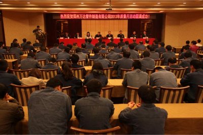 2016/03/15 579 歌聲嘹亮、旗幟飄揚(yáng)、群情激昂,2013年4月3日上午九點(diǎn),鄭州萬達(dá)管件制造有限公司隆重召開了2013年公司質(zhì)量月活動宣誓大會。鄭州市質(zhì)量技術(shù)監(jiān)督局尚副局長、肖處長、綜合保稅區(qū)(航空港區(qū))質(zhì)量技術(shù)監(jiān)督局王局長應(yīng)邀作為嘉賓出席了此次萬達(dá)質(zhì)量月啟動大會。 上午的啟動大會,員工統(tǒng)一了思想,統(tǒng)一了行動,對公司在市場競爭中起到了有...