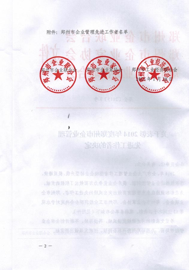 熱烈祝賀我公司白楊同志獲得鄭州市企業(yè)管理先進(jìn)工作者稱號